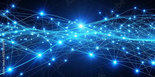 Ethereal Blue Network - Abstract Digital Composition of Interconnected Lines and Points on a Deep Blue Background, Futuristic Technology Concept