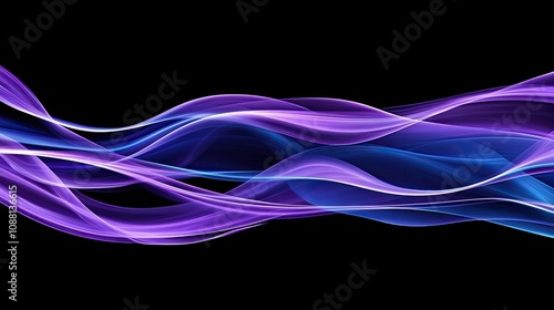 Ethereal Flow of Colorful Waves Illustrating Light and Motion in Abstract Design with Shades of Purple and Blue Against a Black Background