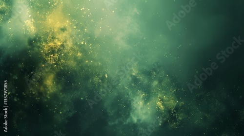 Ethereal Green And Gold Particle Nebula Background With Glitter