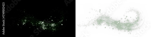 Ethereal green and white png overlay featuring shimmering particles and flowing lines, perfect for enhancing designs with a magical and dreamy atmosphere