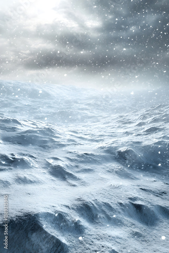 Ethereal Landscape: The Majestic Fury and Beauty of a Blizzard Storm Enveloping a Desolate, Snow-Covered World