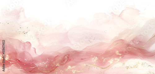 Ethereal panoramic watercolor design with blush, ivory, and subtle gold.