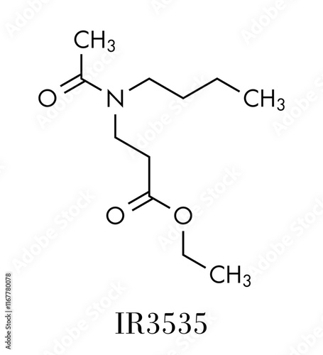 Ethyl butylacetylaminopropionate (IR3535) insect repellent molecule. Skeletal formula.