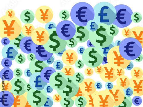 Euro dollar pound yen round signs flying money vector background. Payment concept. Currency symbols