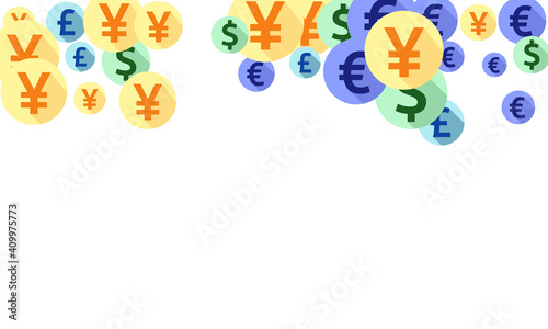 Euro dollar pound yen round signs scatter currency vector design. Forex backdrop. Currency icons