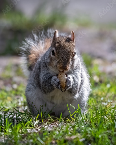 European Grey Squirrel Feeding on Grass