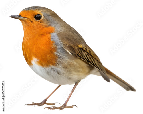European robin bird with distinctive orange breast and white belly isolated on transparent background