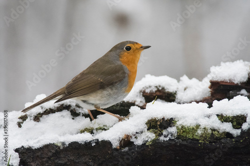 European robin (Erithacus rubecula) in winter, apennine mountains, Italy.