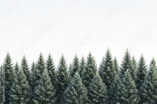 Evergreen forest, trees, nature, landscape, minimalistic, background, white sky, serenity, design