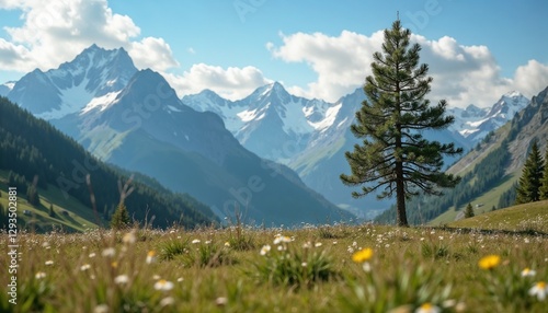 Evergreen Tree Peaceful Serene Mountain Wildflowers