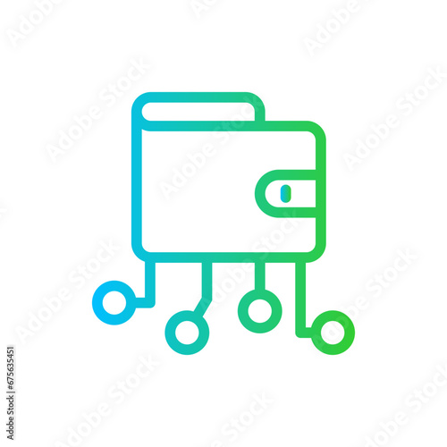 E-wallet digitalization business icon with blue and green gradient outline style. business, finance, wallet, money, payment, internet, online. Vector Illustration
