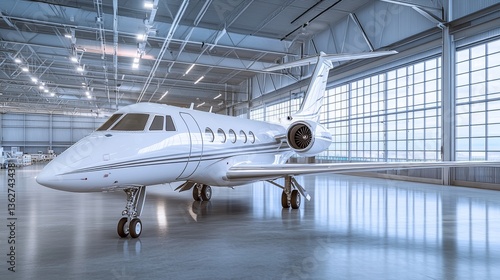 Executive Jet Parked Inside Modern Hangar with Bright Natural Lighting