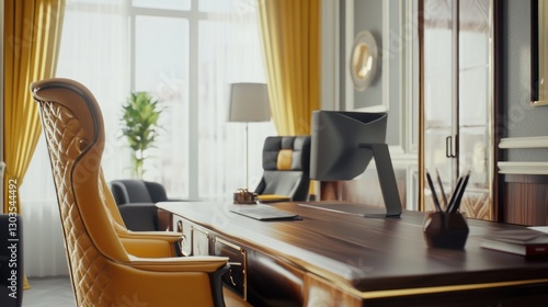 Executive office interior design featuring a luxurious chair and desk