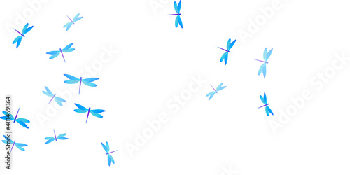 Exotic cyan blue dragonfly flat vector illustration. Summer pretty insects. Simple dragonfly flat dreamy background. Delicate wings damselflies patten. Nature creatures