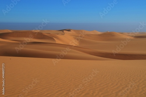 Expansive dry Desert Landscape with Rolling Sand Dunes in Namibia