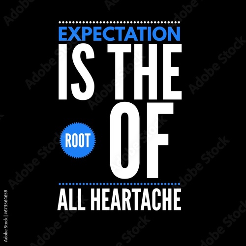 Expectation is the root of all heartache. motivational quotes for motivation, inspiration, success, and t-shirt design.