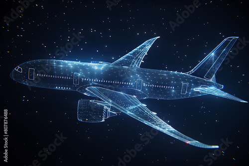 Experience a mesmerizing wireframe visualization against a radiant translucent backdrop, featuring an intricate plane design in a captivating and futuristic concept.