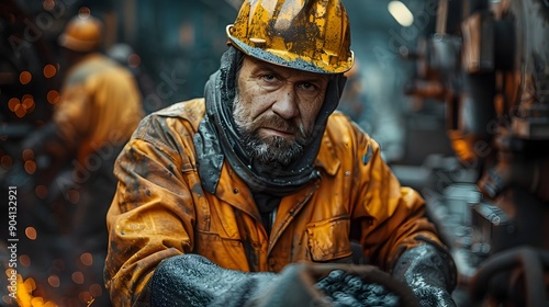 Experienced Construction Worker in Protective Gear at Harsh Industrial Worksite
