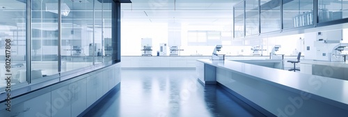 Experimental medical and pharmacological laboratory for the study of viruses and bacteria, treatment of viruses using DNA genome sequencing biotechnologies, banner