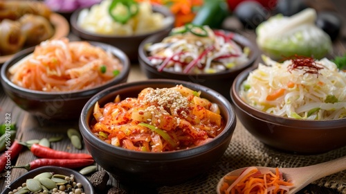 Explore rustic fermented foods in glass jars with veggies and spices, ideal for a healthy probioticrich diet