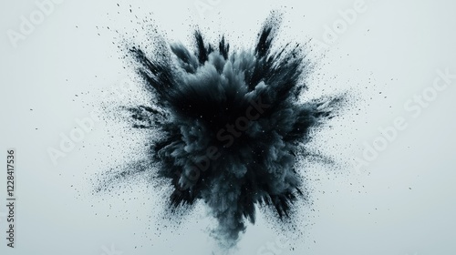 Explosion of Dark Smoke and Particles on Light Background