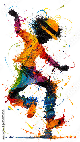 Explosive abstract paint splatter forming a dynamic silhouette of a dancer in motion