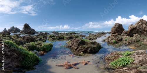 Exported tide pool with starfish and rocks coastal area hdr panoramic photography natural environment scenic view