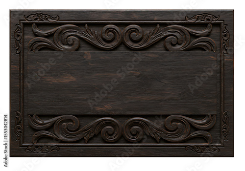 Exquisite dark wood ornate sign frame with intricate carvings provides a rustic and vintage aesthetic.