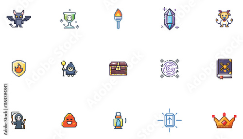 Extensive Pixelated Underworld Icon Set for Creative Game Assets, Logo Design, UI Elements, Fantasy Themes, Merchandising Graphics, and Unique Digital Illustrations