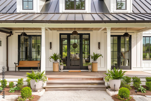 Exterior architecture image of modern farmhouse front door porch