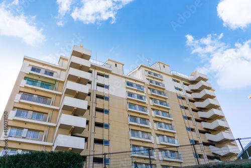 Exterior of high-rise condominium and refreshing blue sky scenery_sky_70