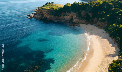 Extremely beautiful coastline and beach, scenic lake shore, bird's eye view, top view, natural scenery