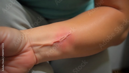 extremely dry and cracked skin on person's elbow, highlighting skin condition requiring treatment, created with generative ai