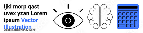 Eye, brain, and calculator represent vision, creativity, and calculation. Ideal for education, innovation, brainstorming, problem-solving technology learning simple landing page