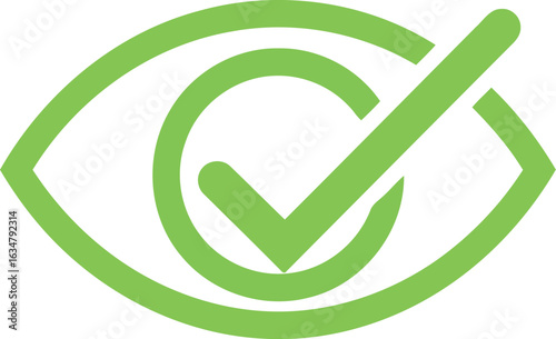 Eye vision check mark icon green outline