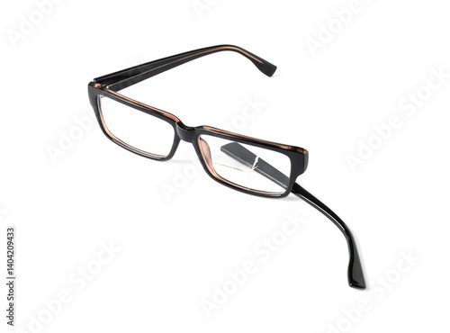 Eyeglasses with one broken lens isolated on white