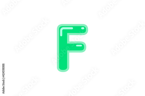 F letter alphabet green candy jelly glossy vector isolated on white background