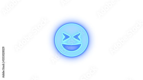 Face grin squint icon blue color glowing neon on transparent background