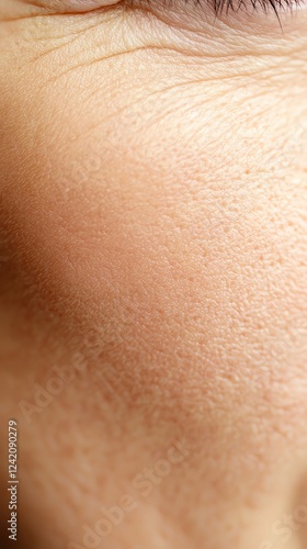 Facial skin texture concept. Extreme close-up of mature skin texture, emphasizing the depth of wrinkles and natural imperfections, soft shadows, sharp detail