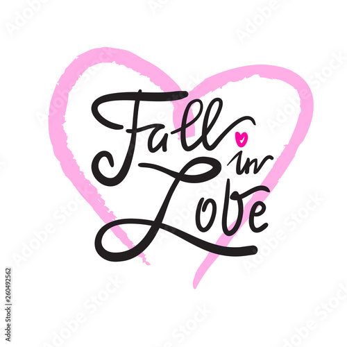 Fall in love - simple love motivational quote. Hand drawn beautiful lettering. Print for inspirational poster, t-shirt, bag, cups, Valentines cards, flyer, sticker, badge. Elegant calligraphy writing