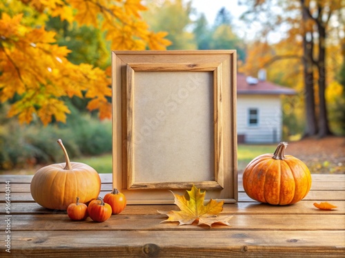 Fall Wooden Frame with Thanksgiving typography lettering, Background Concept