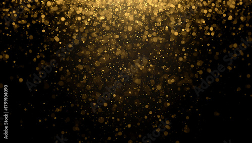 Falling Gold Glitter Particles on a Dark Black Background with Bokeh Effects dust