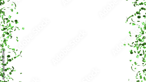 Falling Green Confetti on White Background. Flying holiday tinsel.
