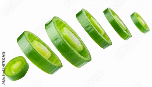falling green onion slices cut chives isolated on transparent or white background