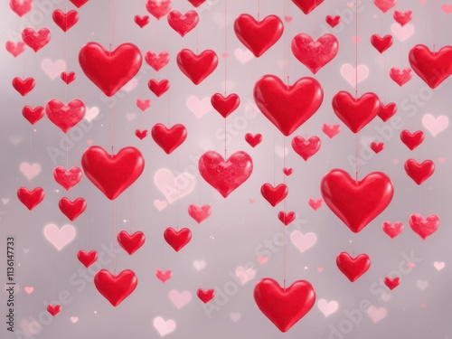 Falling hearts on transparent background, romantic Valentine's Day design, digital, red