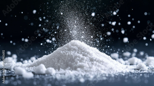 Falling powdered sugar on soft white surface for baking and culinary design