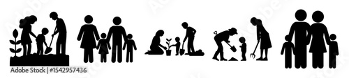 Family Activities Pictograms Depicting Growing Plants, Gardening and Family Togetherness Concepts
