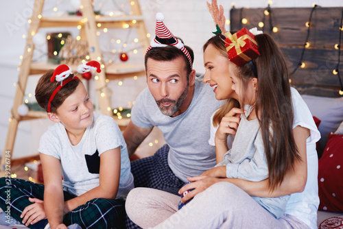 Family celebrating Christmas together at home