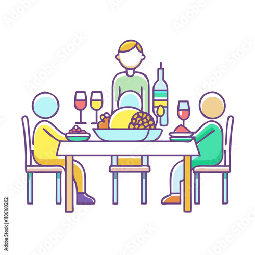 family dinner table setting vector icon, family day vector illustration - simple illustration of family dinner table setting perfect for logos, and family day-themed designs.