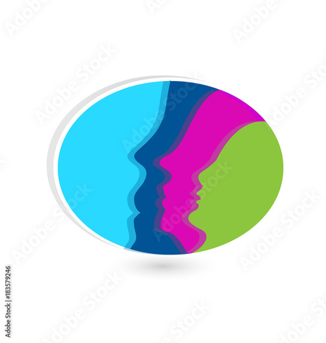 Family faces in oval shape .Connected people vector icon